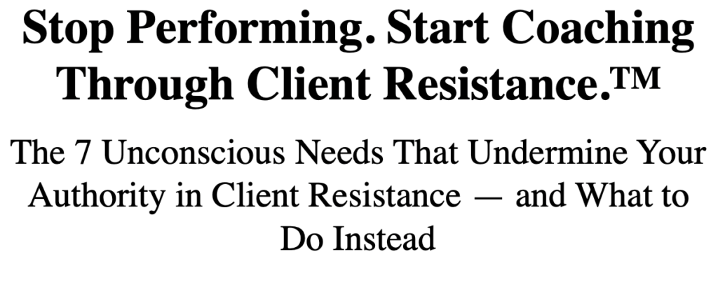 Special Report: Stop Performing. Start Coaching Through Client Resistance. The 7 Unconscious Needs That Undermine Your Authority in Client Resistance —and What to Do Instead"